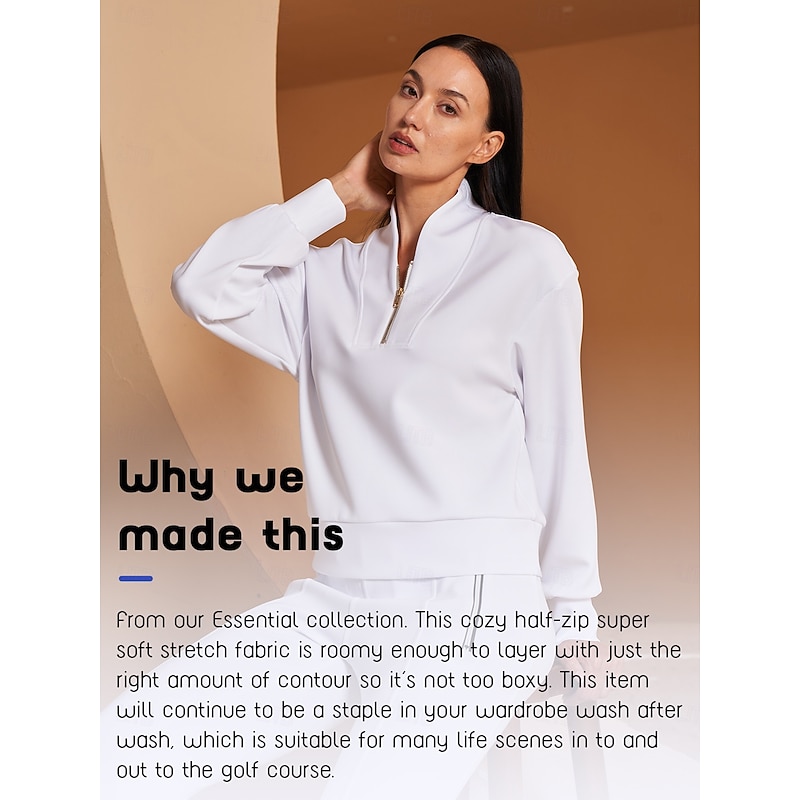 Women's Golf Pullover Sweatshirt Black White Dark Navy Long Sleeve Top Ladies Golf Attire Clothes Outfits Wear Apparel 19