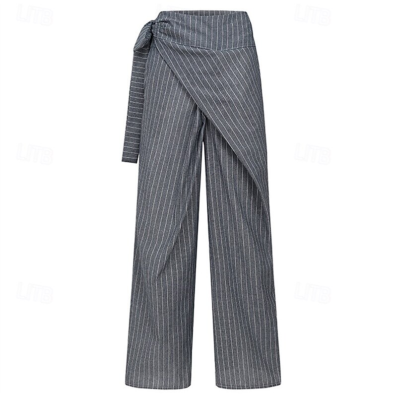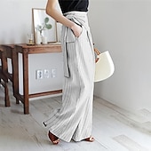 More information about Women's Dress Pants Wide Leg Pants Trousers Fashion Streetwear Full Length High Waist Stripe Drawstring Breathability Comfortable Street Daily Wear Going out White Blue Dark Gray Spring Fall Regular