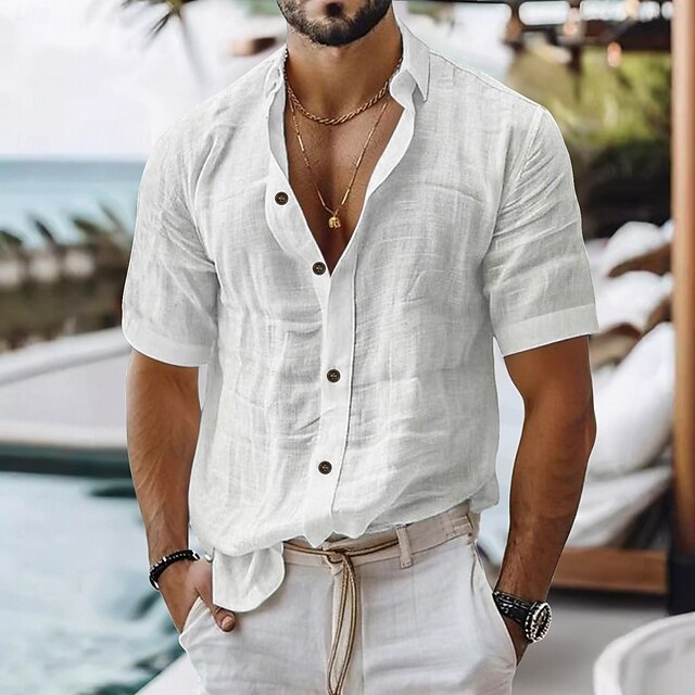 This Men's Linen Shirt Casual Shirt Cotton Linen Shirt Button Up Shirt Solid / Plain Color Vacation Daily Wear White Light Green Pink Dark Navy Short Sleeve Lapel All Seasons Clothing Apparel Buckle combines elegant design with practical functionality. Every detail has been carefully considered to ensure you get the premier possible experience. The top-grade construction means this product will serve you well for years to come.