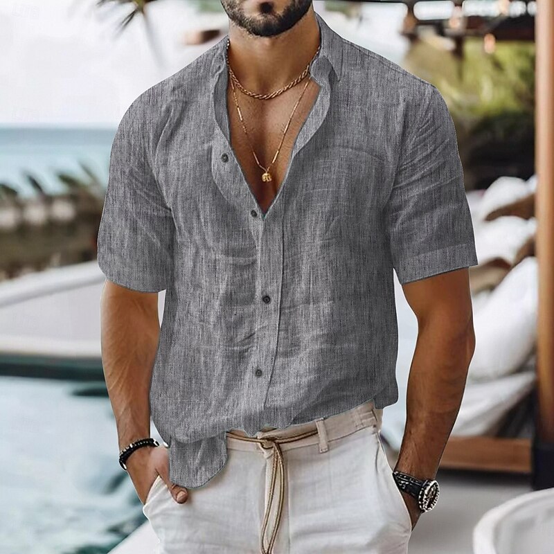 - Stay cool and contemporary in this short sleeve linen shirt for men