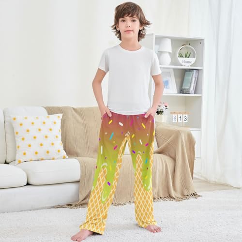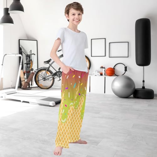 Boy's Pants Pink Green Ice Cream Jogger Pants Elastic Waist Long Bottoms Trousers with Pockets 6-14 Years 6