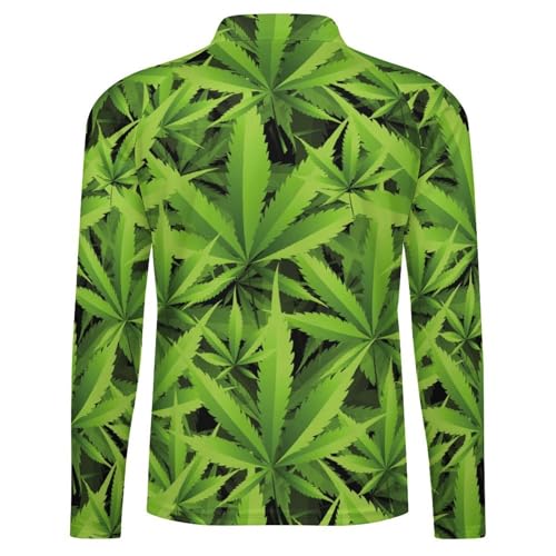 Marijuana and Cannabis of Leaves Men's Rash Guard Long Sleeves Quick Dry Fishing Workout Shirts with Zipper 6