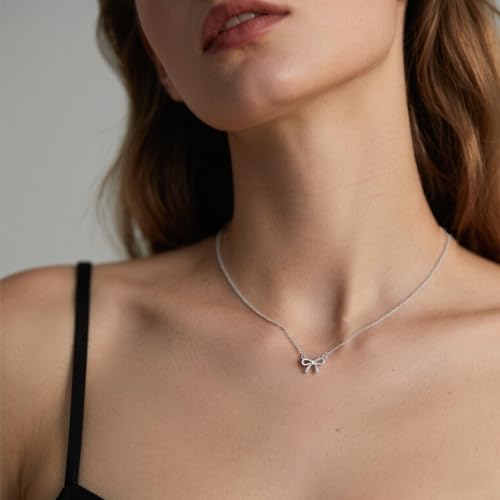 SLUYNZ 925 Sterling Silver Bow Necklace Choker for Women Mother Wife Bow Ribbon Pendant Necklace Chain Minimalist 4