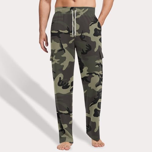 HOT ! Sweatpants for Men Lightweight Baggy Stretch Drawstring Elastic Waist Casual Pants Camouflage Trousers with Pocket
