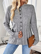 More information about Women's Sweater Cardigan Elegant Fashion Streetwear Pure Color Crew Neck Pocket Knitted Long Sleeve Regular Tops Knit Outdoor Daily Weekend Gray Fall Winter