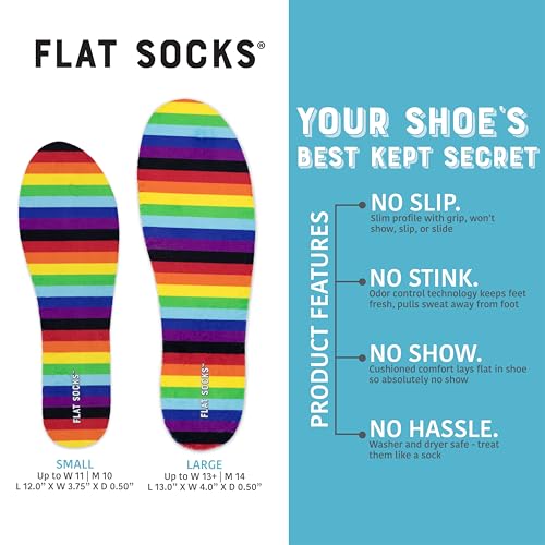 • NO STINK by creating a moisture-wicking barrier between your bare feet and your shoe’s insole; FLAT SOCKS saves your shoes from becoming a stinky swamp!
