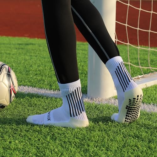 • FIRM GRIP: Our Athletic Soccer grip socks are non-slip socks for boys and girls that are equipped with quality anti slip grippers that make sure you stay stable and don't slide around on your feet or in your shoes. Our sticky rubber grips are true quality and won't scuff your floors or fall off in the wash like other sock brands might have done so.