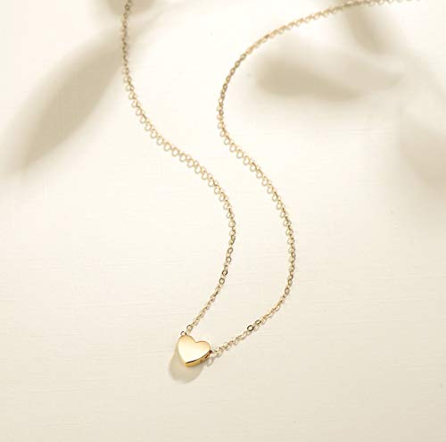 Carleen Solid Real 14K Yellow Gold Tiny Dot 6mm Round Small Cute Simple Heart Necklace Pendant Minimalist Dainty Everyday Fine Jewelry for Women, 16+2 Extender Gold Chain 5