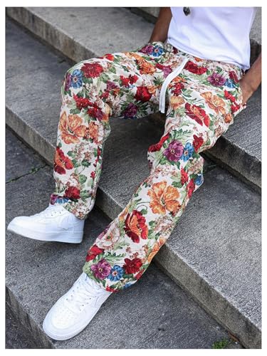 • Features: Floral pants for men, allover print, drawstring waist, straight leg, pockets, vintage