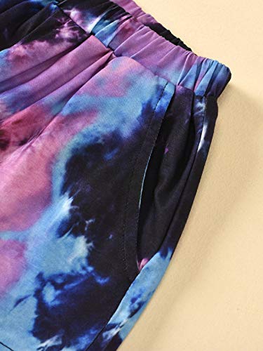 Girls Summer Tie-Dye Outfits Elastic Drawstring T-Shirt Crop Top and Elastic Waist Shorts Set with Side Pockets 4