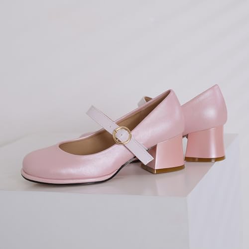 Women Mary Jane Shoes Round Toe Block Heel Court Shoes 5