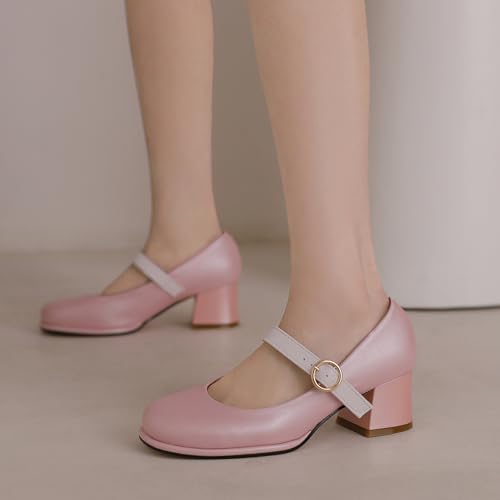Women Mary Jane Shoes Round Toe Block Heel Court Shoes 6