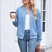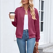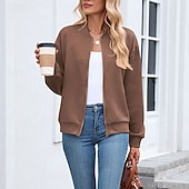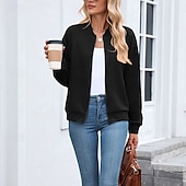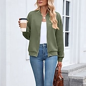 More information about Women's Coat Casual Jacket Comfortable Breathable Zipper Fashion Modern Casual Plain Going out Weekend Zipper Regular Stand Collar Regular Fit Long Sleeve Outerwear Black Pink Wine Spring Fall