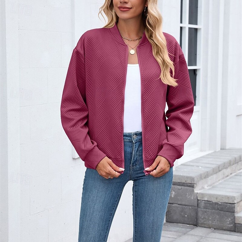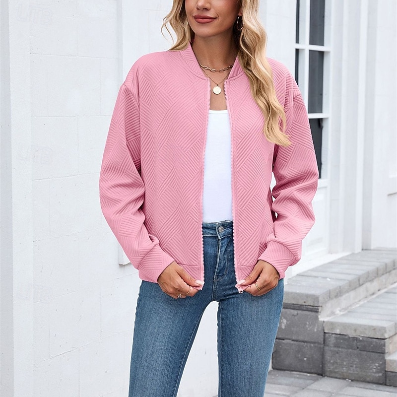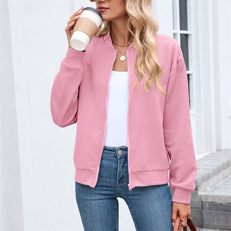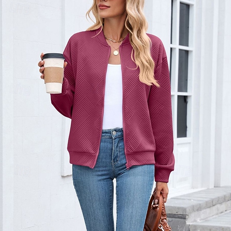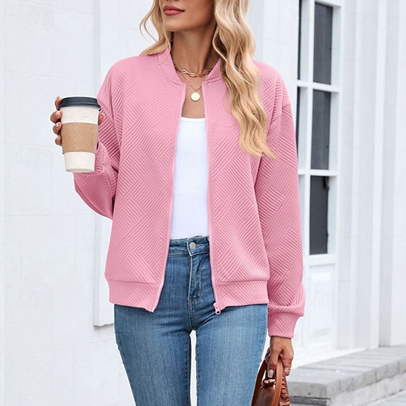 HOT ! Women's Coat Casual Jacket Comfortable Breathable Zipper Fashion Modern Casual Plain Going out Weekend Zipper Regular Stand Collar Regular Fit Long Sleeve Outerwear Black Pink Wine Spring Fall