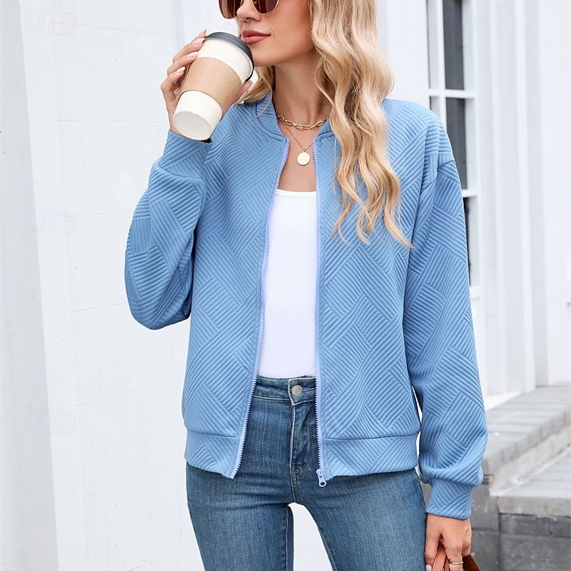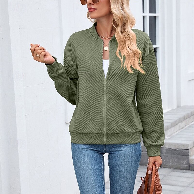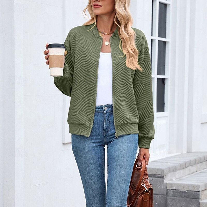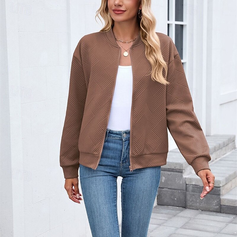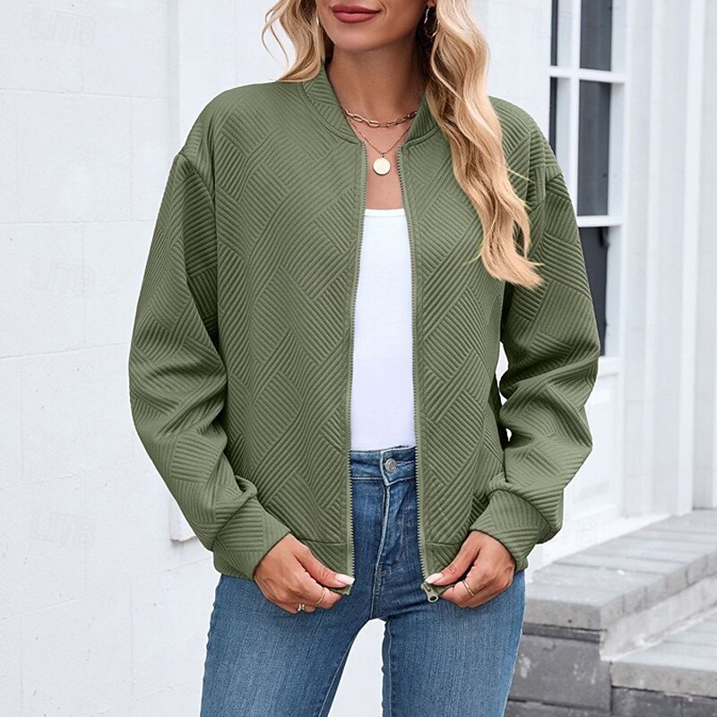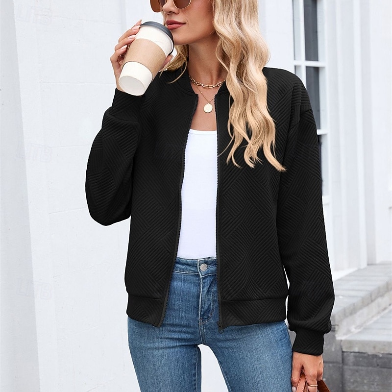 HOT ! Women's Coat Casual Jacket Comfortable Breathable Zipper Fashion Modern Casual Plain Going out Weekend Zipper Regular Stand Collar Regular Fit Long Sleeve Outerwear Black Pink Wine Spring Fall