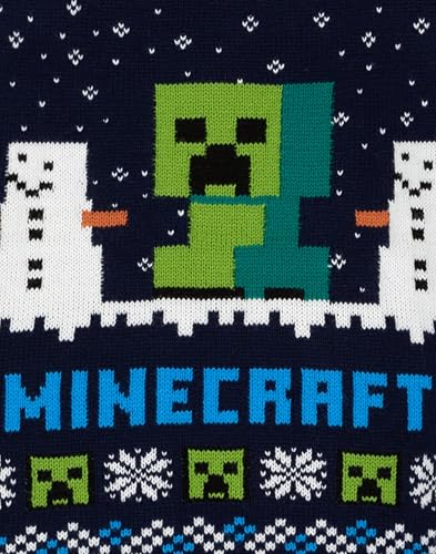 • MINECRAFT CREEPER JUMPER FOR KIDS - Minecraft knitted pullover for gamers showcases fan favorite Minecraft character Creeper surrounded by the iconic Minecraft snow day scene in bold, contrasted against the navy knit jumper, making the perfect addition to any fan's Minecraft merchandise collection.