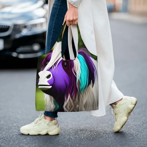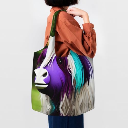 Colorful cow's head Printed Canvas Bag Women's Fashion Shoulder Tote Bag Lightweight Shopping Bag 1