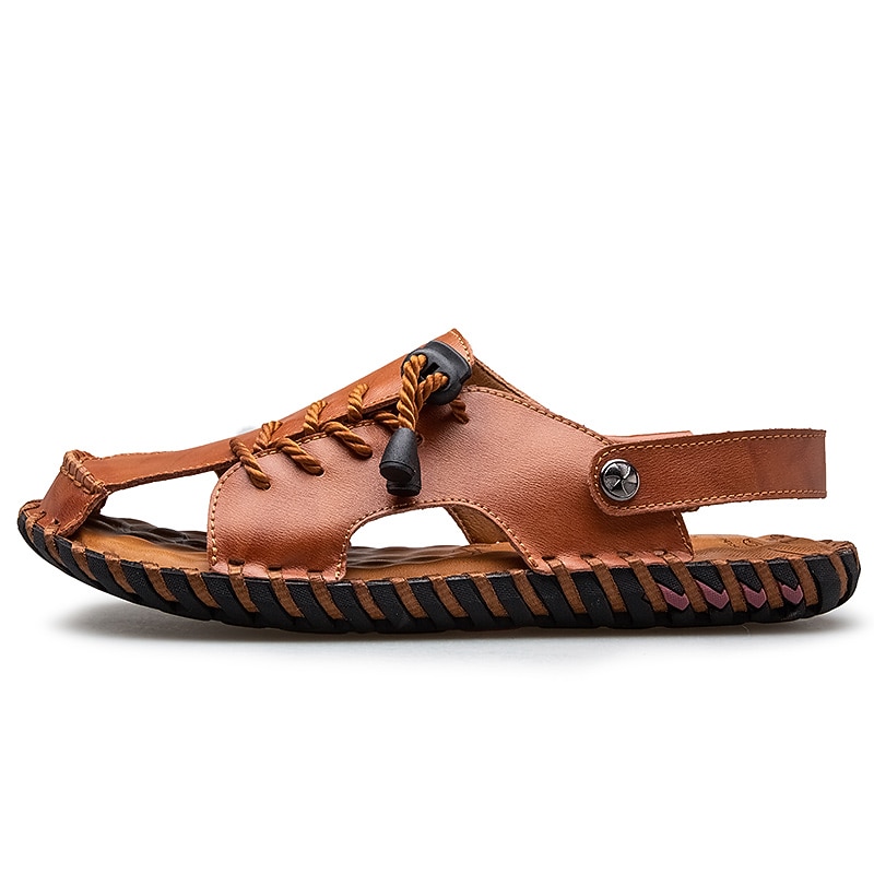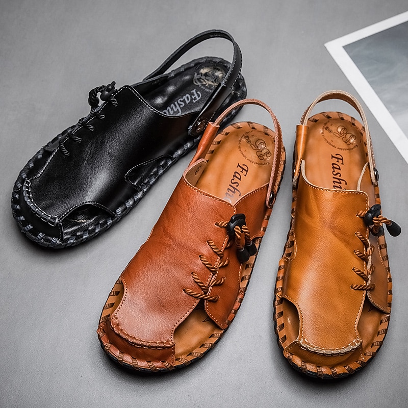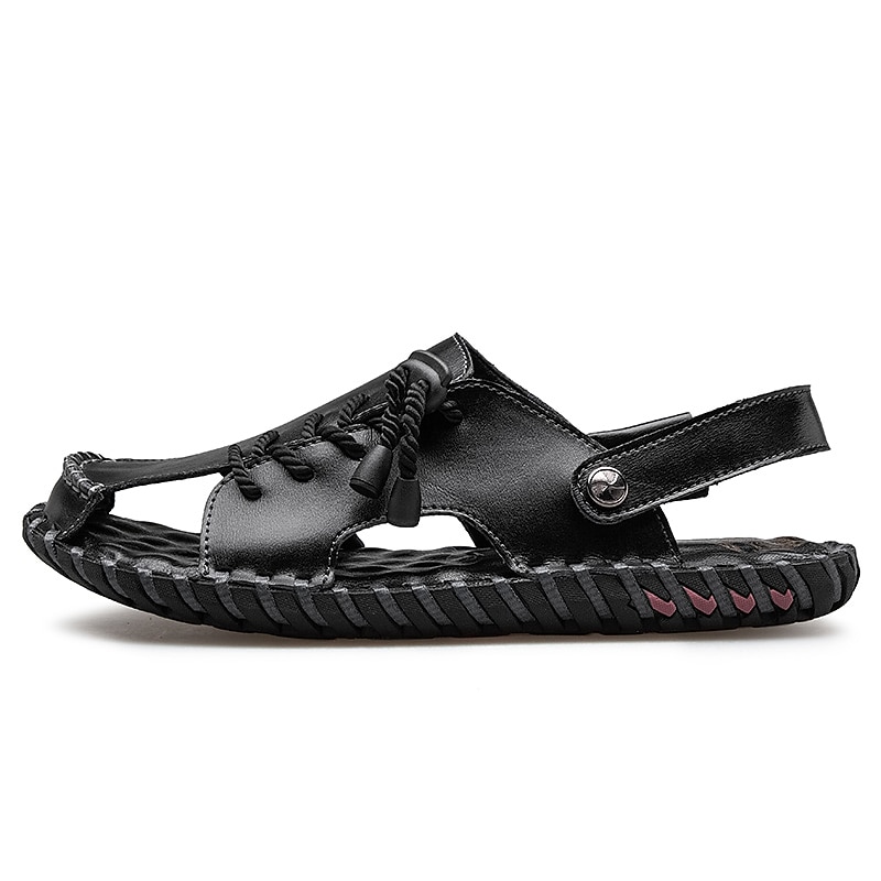 Highlights [Fabric] Crafted from premium microfiber leather, these men's sandals ensure both durability and a smooth, sophisticated feel. The material is breathable for all-day comfort, making them perfect for summer wear. [Style] The sandals boast a flat design that provides a relaxed and comfortable fit, ideal for casual outings. The sleek, solid-colored pattern complements any summer wardrobe with a touch of effortless style. [Design Highlights] Featuring an open-toe design with intricate woven detailing, these sandals showcase a handmade appearance. The adjustable back strap with an elastic band closure offers a secure, personalized fit, while the flexible rubber outsole provides excellent traction on a variety of surfaces. [Occasions] These sandals are perfect for vacations, outdoor adventures, and beach outings. Whether you're strolling along the boardwalk or enjoying a casual day out, their stylish and functional design suits a wide range of summer activities. [Size Range] Available in a wide range of sizes, from EU 38 to EU 47, these sandals cater to different feet sizes, ensuring a comfortable fit for everyone.