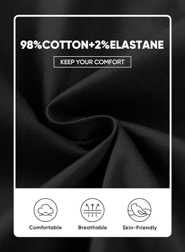 • Made from 98% Cotton and 2% Elastane, it offers maximum mobility. Wrinkle-resistant and does not shrink after washing. The unique woven pocket design makes these solid color pants both classic and stylish.