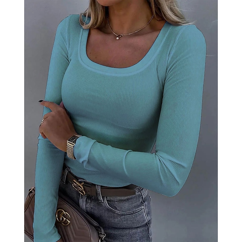 Highlights [Fabric] This Women's T-shirt is crafted from polyester, providing both comfort and durability. The micro-elastic nature of the fabric blends form-fitting comfort with ease of movement, making it great for daily wear and perfect for transitioning through Spring and Fall. [Fit] Designed for a slim fit, this long-sleeve top hugs the body gently, creating a flattering silhouette without restricting movement. Its regular length makes it versatile, whether worn alone or layered with outerwear. [Design Highlights] The top boasts a classic U-neck design, presenting a clean and modern look that’s both modest and fashionable. The solid color options, including blue, white, black, and pink, offer a minimalist aesthetic that pairs effortlessly with various ensembles. [Occasions] Ideal for daily wear, this T-shirt is versatile enough for both casual outings and relaxed weekend gatherings. Its basic style makes it an essential wardrobe staple that can be easily dressed up or down to suit different occasions. [Size Range] Available in sizes S to 2XL, this T-shirt offers a wide range of fit options, ensuring there’s a comfortable and stylish choice for a variety of body types.