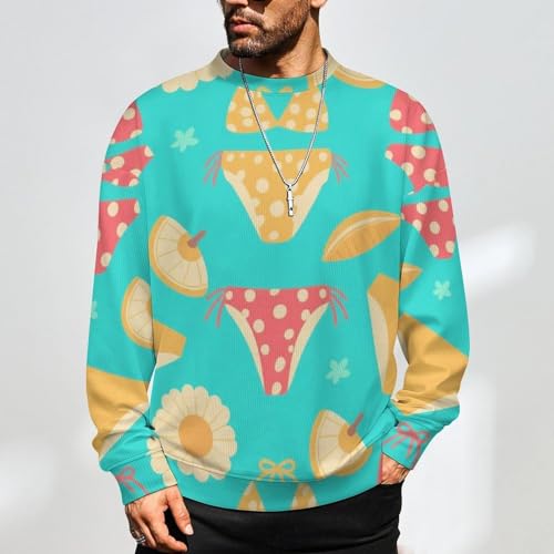 sizzling ! MoBlinko Summer Bikini Flowers Mens Sweater Crewneck Sweater Lightweight Sweaters for Men Long Sleeve Pullover