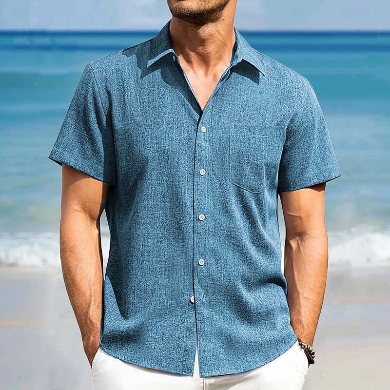 More information about Men's Linen Shirt Summer Shirt Beach Shirt Short Sleeve Fashion Casual Vacation Holiday Beach Wear Summer Spring Collar Collared Shirts Front One Pocket Dark Navy Blue Green Gray