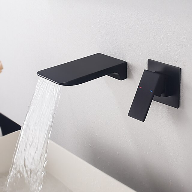 sizzling ! Bathroom Sink Faucet - Wall Mount / Waterfall Painted Finishes Wall Mounted Single Handle Two HolesBath Taps