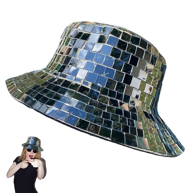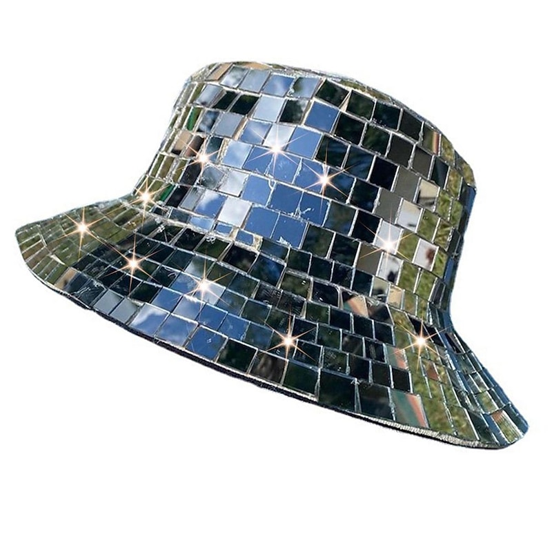 HOT ! Disco Bucket Hat, Glitter Mirror Disco Fishing Hat, Disco Ball Hats for DJ, Bucket Cap with Glitter Sequins for Club