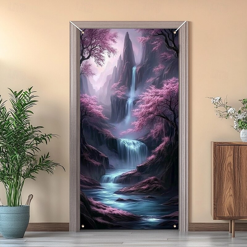 Door Decorations Door Covers Cave Waterfall Door Tapestry Door Curtain Decoration Backdrop Indoor/Outdoor Door Banner for Front Door Farmhouse 1