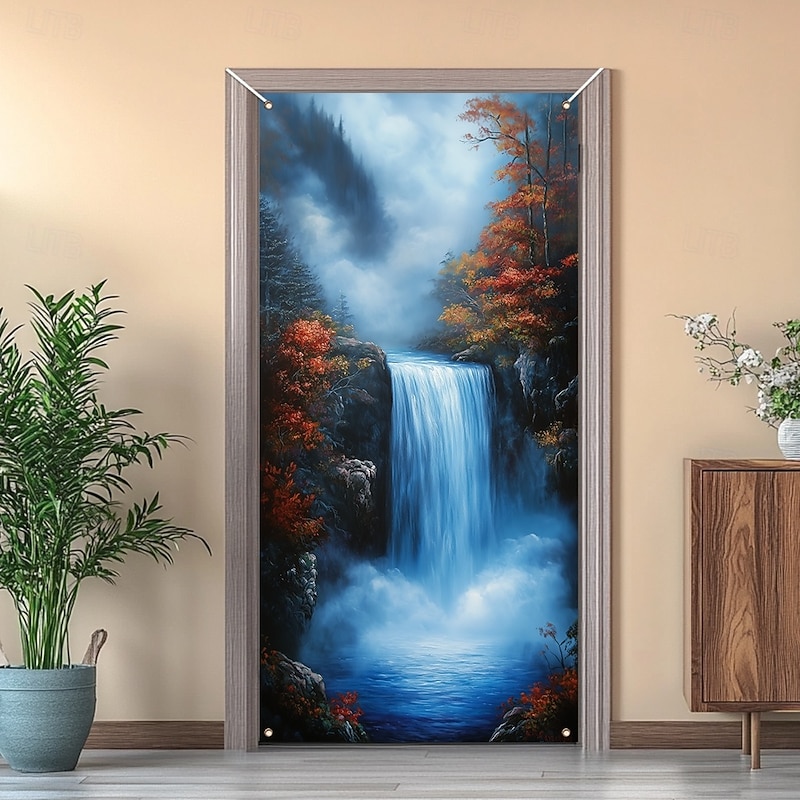 HOT ! Door Decorations Door Covers Cave Waterfall Door Tapestry Door Curtain Decoration Backdrop Indoor/Outdoor Door Banner for Front Door Farmhouse