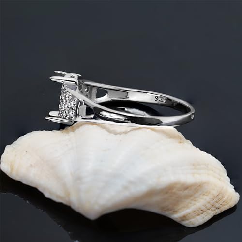 Silver Ring Blank 7x9mm Prong Setting Cubic Zirconia 19 Pcs Rhodium Plated Aesthetic Ring Base DIY 6