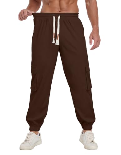 HOT ! Askdeer Mens Corduroy Joggers Pants Casual Cargo Pants Drawstring Elastic Waist Baggy Tapered Sweatpants with 5 Pockets Camel
