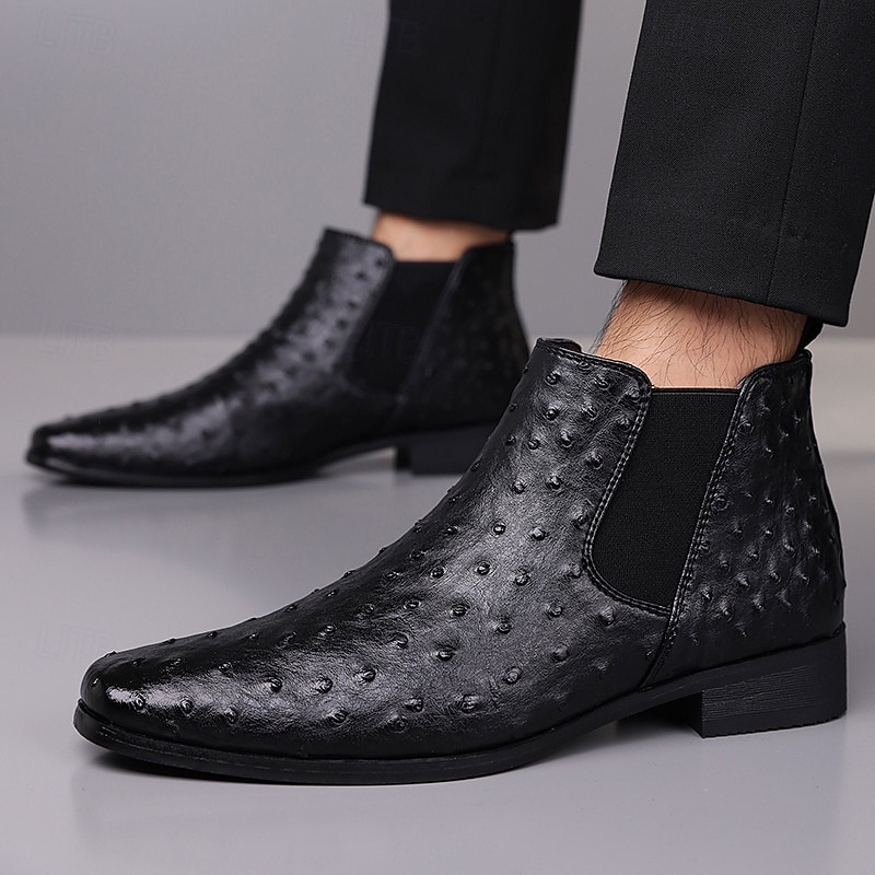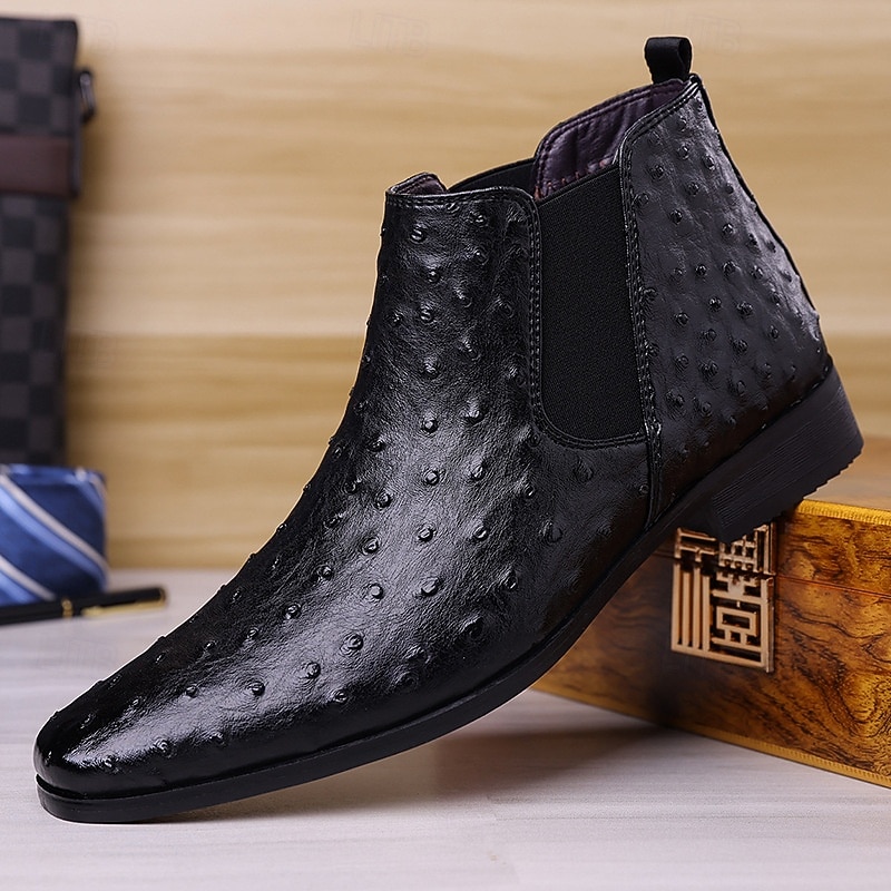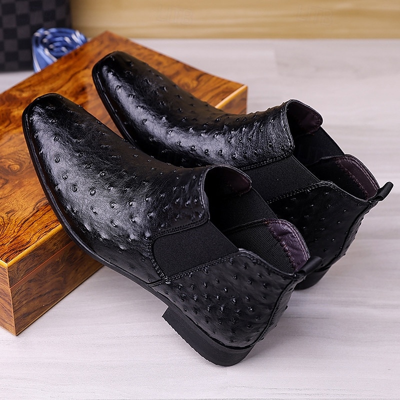HOT ! Men's Gray Faux Leather Chelsea Boots – Ostrich Pattern Slip-On Ankle Dress Shoes for Business, Formal Events and Daily Wear