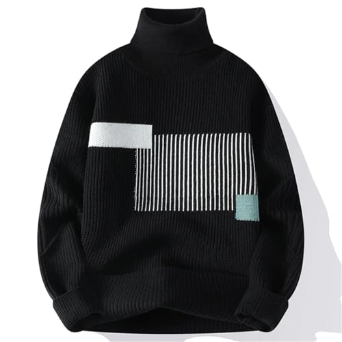 Men High Neck Patchwork Knit Sweater Loose Casual Pullover Winter Korean Style Warm Jumper 1