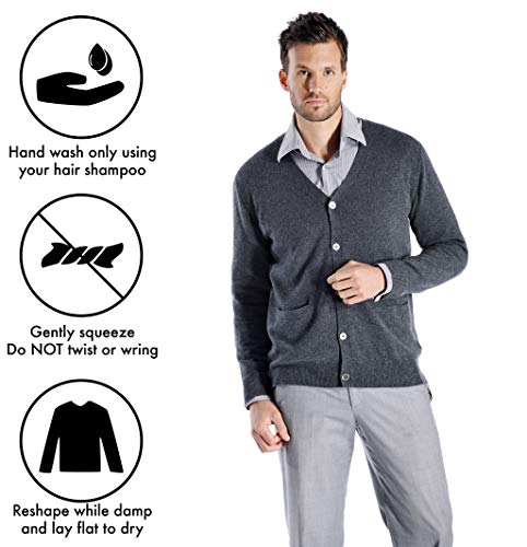 Cashmere Boutique: Men's100% Pure Cashmere Button Front Long Sleeve Cardigan Sweater with PocketsColor: Charcoal Gray, Size: Large 7