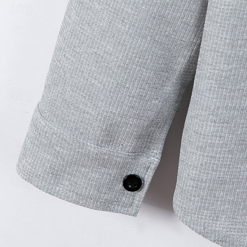 More information about Men's Shirt Waffle Shirt Casual Shirt Band Collar Shirt Button Up Shirt Black White Wine Green khaki Long Sleeve Plain Mandarin Collar Daily Going out Clothing Apparel Fashion Modern Casual