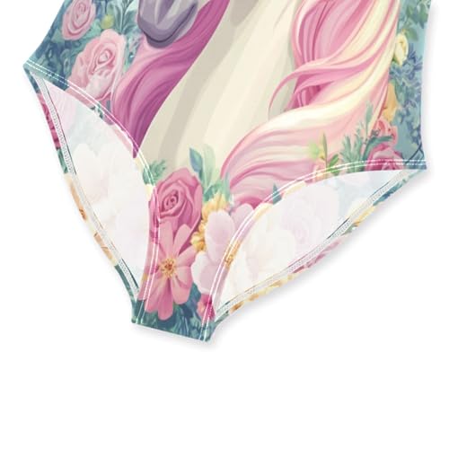 CaTaKu Girls One Piece Swimsuits Unicorn Flower Toddler Bathing Suit for Girls Kids Swimwear 3-10Y 4