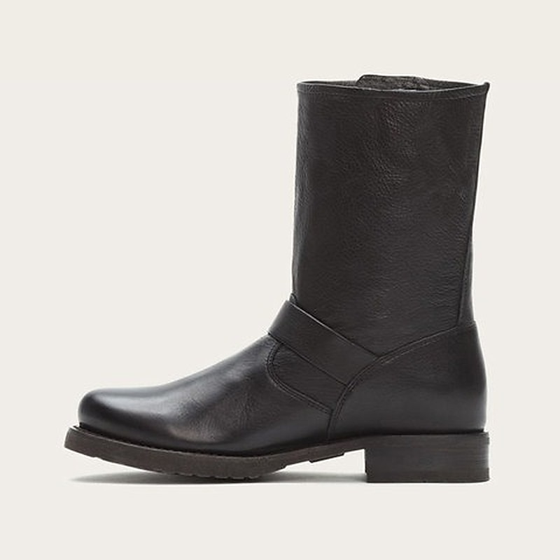 Women's Black Faux Leather Motorcycle Boots with Buckle Strap, Mid-Calf Design, and Rugged Sole for Biker and Casual Wear 11