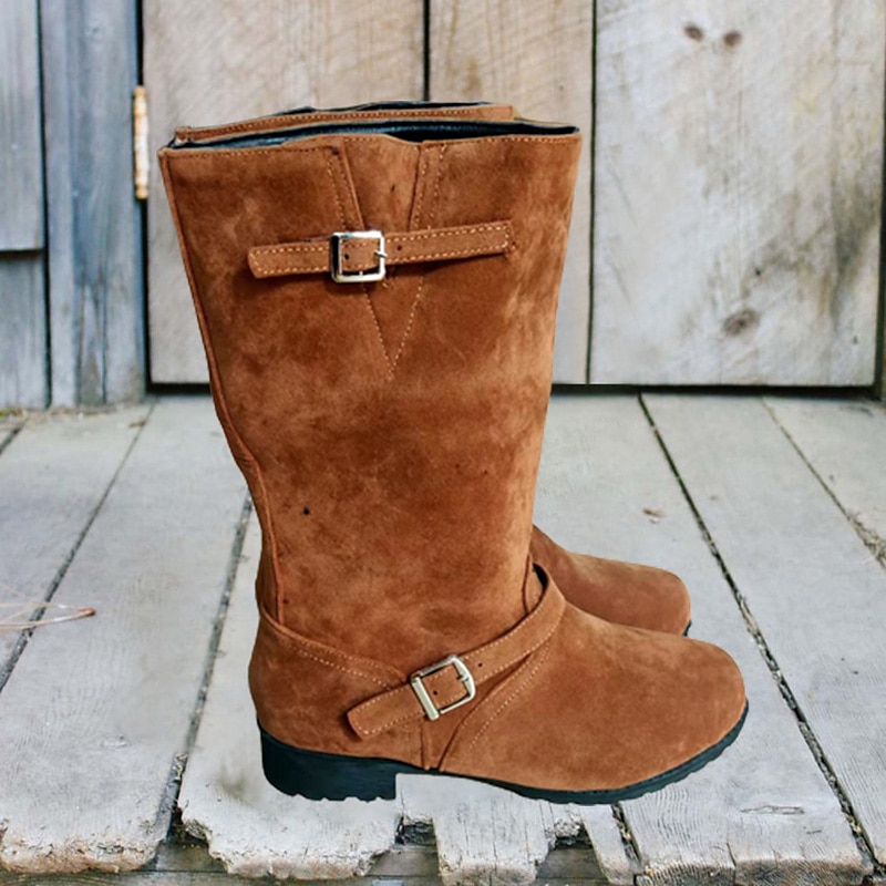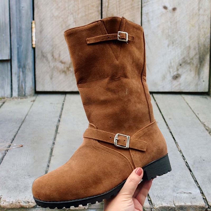 Highlights Product Selling Points: - Embellished with a fashionable buckle for added style. - Perfect for the winter season, keeping your feet warm and cozy. - Chunky heels for added stability and comfort. - Round toe shape for a classic and versatile look. - Designed to follow the 2023 trend of catering to plus-size individuals.
