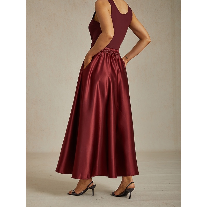 More information about Women's Skirt Elegant Vintage Fashion Maxi Mid Waist Skirts Ruched Pleated Pocket Micro-elastic New Year Party Evening Wear Wine Red Spring 100% Polyester