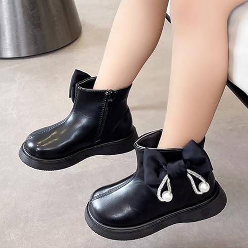 Baby Toddler Girl's S𝐨𝐟ia Sweet Short Ankle Boots Bowknot Side Zipper Dress Booties Kids Solid Winter Chunky Shoes 5