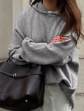 More information about Women's Pullover Hoodie Sweatshirt Plain Streetwear Casual Long Sleeve Hooded Regular Tops Holiday Going out Black Wine Coffee Gray Fall Winter