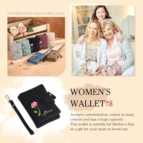 Nobelook PU Leather Women's Wallets for Women Mother Grandma - chic and Practical Ladies Wallet with Birthday Flowers Design (Black)