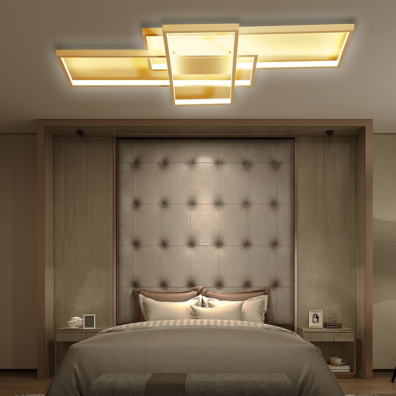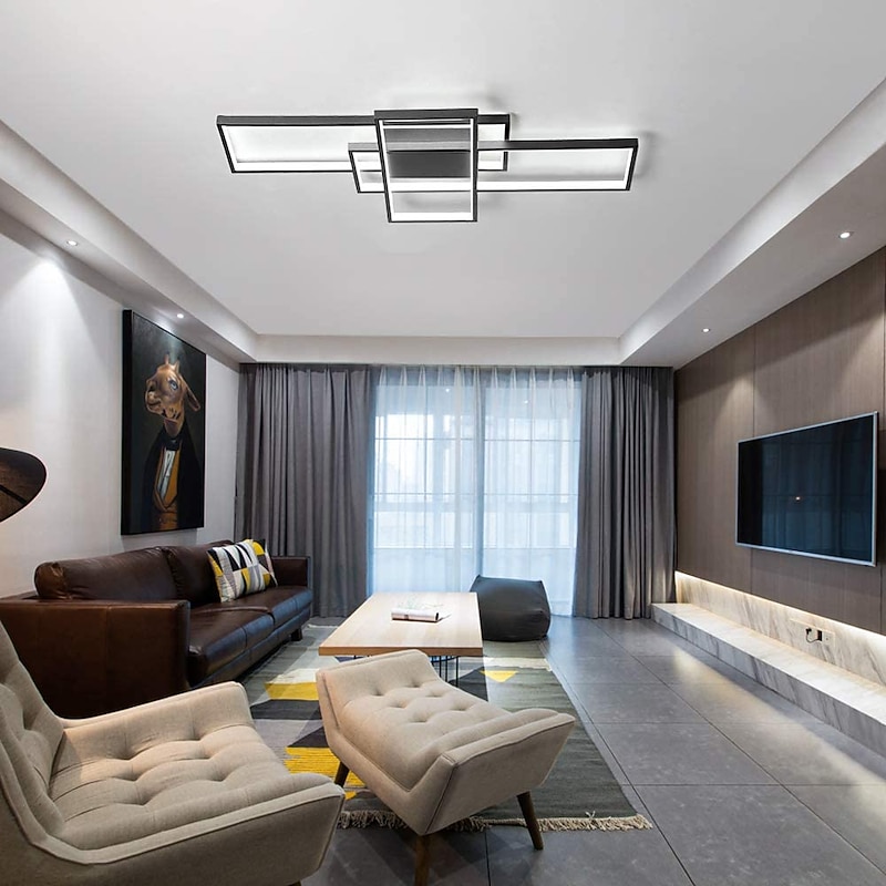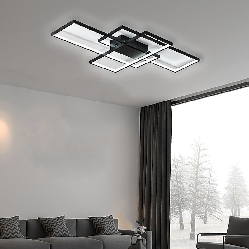 105cm LED 3-Light Ceiling Light Aluminum Geometric Pattern Linear Flush Mount Light  Modern Style Painted Finishes Dimmable  Office Dining Room Lights ONLY DIMMABLE WITH REMOTE CONTROL 5