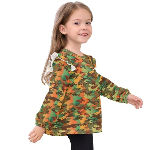 Brown Green Camouflage Girls Shirts Cotton Long Sleeve Ruffle Toddler Tee Tops 5