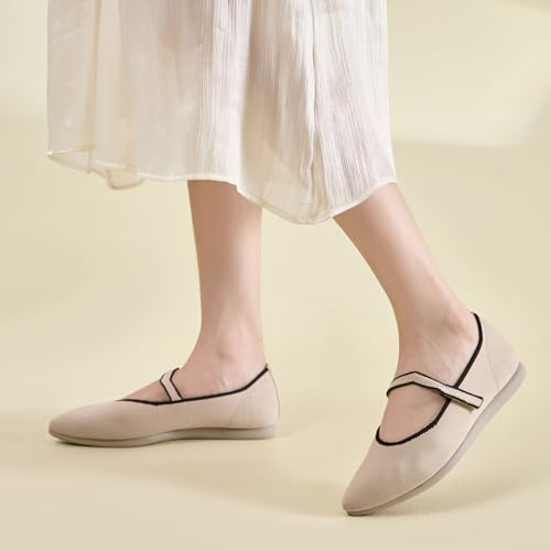 Ballet Flats for Women Pointed Toe Knit Mary Jane Shoes Comfortable Dressy Adjustable Straps Flat 6
