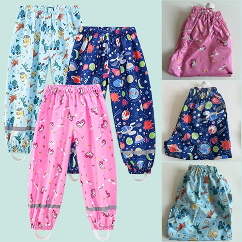 • Multifunction: Elastic foot straps prevent the pant legs from sliding up, pair them with rain boots.keep your child's body dry on rainy days, It will keep your kids cleaner when they playing sand or mud, potterying, scrawling or drawing in the school, kindergarten.