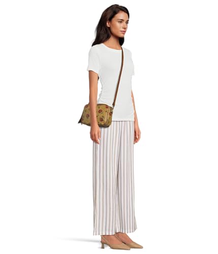 • Exterior: 1 rear slip pocket with magnetic snap closure, leather trim with burned edge finish