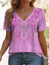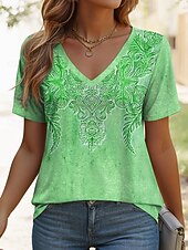 More information about Women's T Shirt Graphic Geometric Paisley Vintage Ethnic Casual Short Sleeve V Neck Regular Tops Daily Print Blue Purple Green Summer Spring