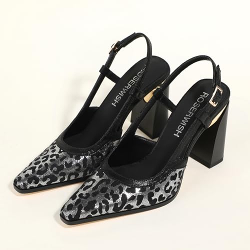 • 3.5" Chunky Block Heel: Sturdy 3.5-inch chunky heel ensures stability for all-day wear. The slingback straps with adjustable metallic buckle secure your feet comfortably, while the closed pointed toe elegantly elongates legs.